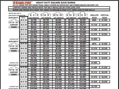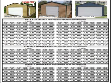American Steel Carports, Inc. is another Company to choose from. The Standard is 18x21 with a height of 6 ft. tall. The round corner roof can be upgraded to A-frame for $100. All color options for roof and trim are included in the price. The maximum Width is 30', maximum Length is 50', and can be up to 12' tall. Installation is 4-6 weeks from the time of ordering, and is included in the price. Down payment is 10% when ordering, and the balance is paid at installation.