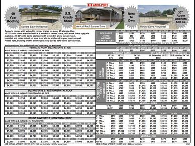 *Rent to Own is an option for an order over $1,000. Customer must agree to carry insurance on the structure until it is paid in full. The unit must be constructed with snow trusses and cable anchors.